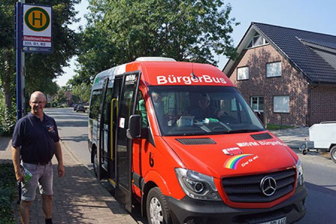 Neun Monate musste es „ohne“ gehen. Montagmorgen (16.08.2021) startet er wieder: der Bürgerbus in Hoetmar, vor zehn Jahren das erste derartige System im Gebiet der Regionalverkehr Münsterland GmbH. „Einer für alle“ steht nicht nur auf dem Sprinter, sondern auch auf den neu angeschafften Fahrerjacken, die Vereinsvorsitzender Paul Schwienhorst Mittwochmorgen vorstellte.