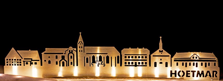 Die Skyline ist aus hochwertigem Edelstahl gefertigt und in zwei verschiedenen Größen erhältlich (50 cm lang & 30 cm lang). Beide Modelle sind in den Fenstern des Leutehauses sowie im Lädchen (Martha Lange) auf der Ahlener Str. ausgestellt.