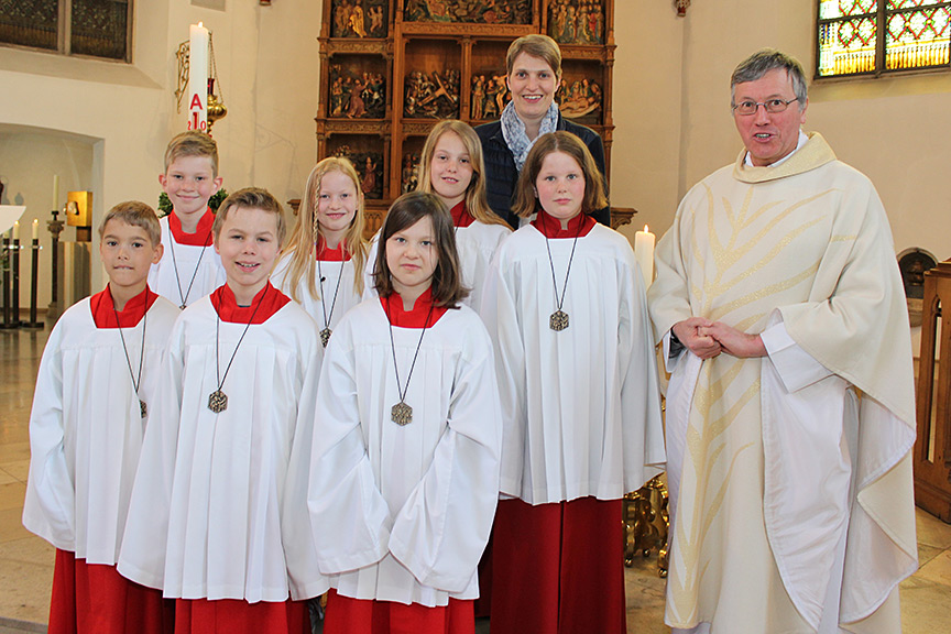 „Ich wünsche den Messdienern viel Freude beim Altardienst“, sagte Pfarrdechant Manfred Krampe, der die Kinder gemeinsam mit Karin Bütfering seit Ende Januar ausgebildet hatte.
